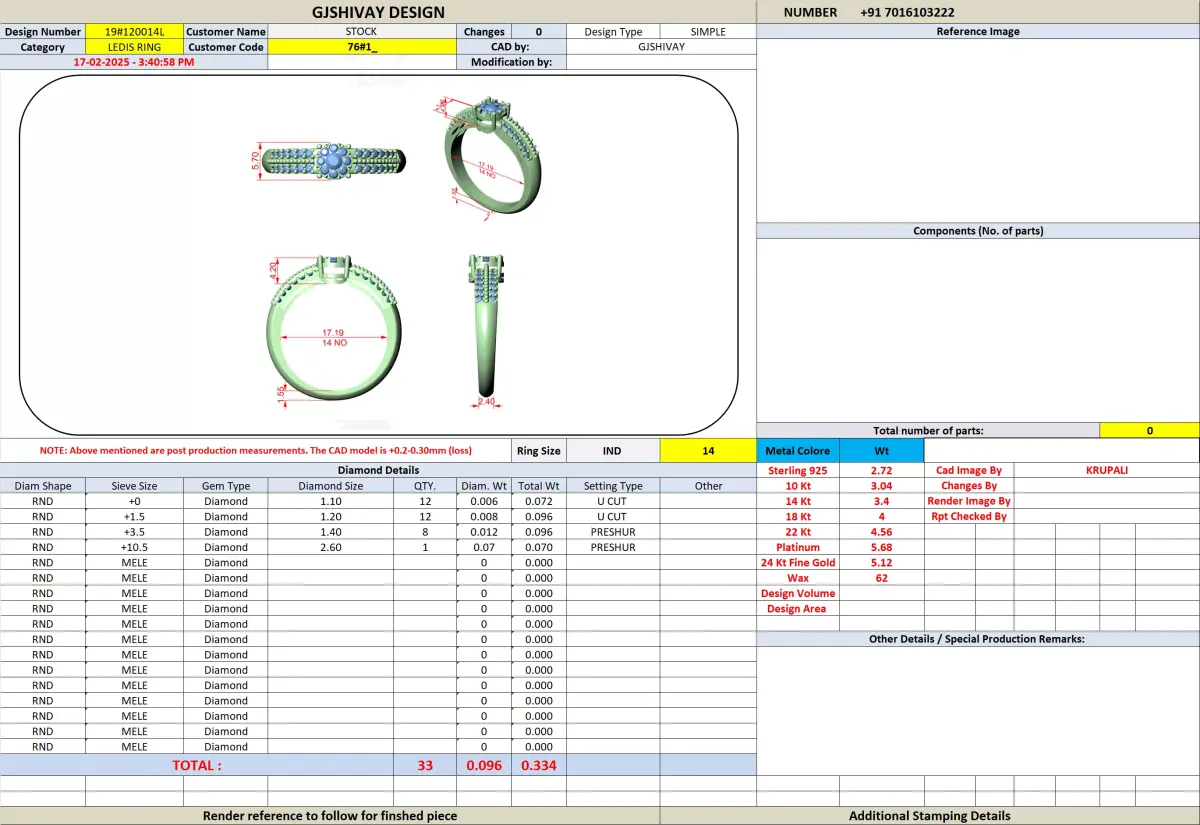 Basic assistance such as file checking, scaling guidance, and clarification regarding the design structure is provided to help you use the model efficiently in your jewellery manufacturing workflow.