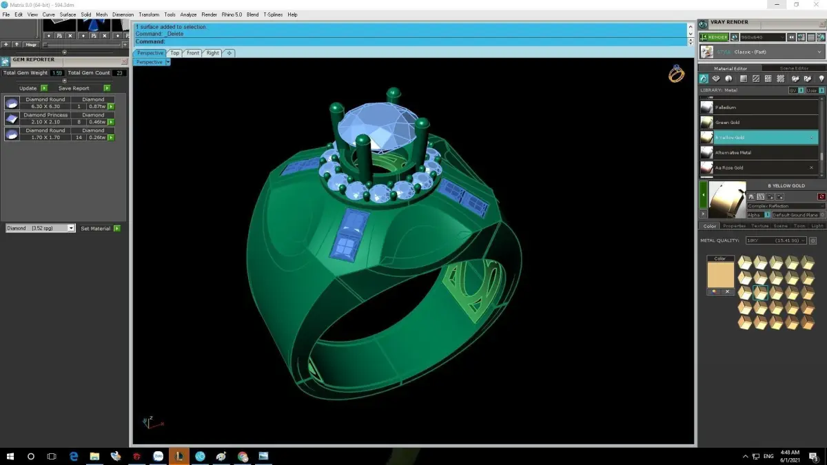 This statement ring can be produced in yellow gold, white gold, or rose gold, suitable for gentlemen who value refined craftsmanship and luxury aesthetics. The 3D file includes complete dimensions, gemstone sizes, and accurate gold weight for professional use in jewelry production.