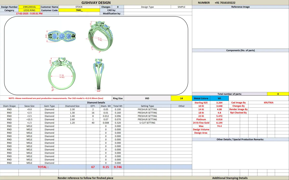 The editable CAD file allows easy customization such as ring size adjustment, metal variation, and stone size modification according to production requirements.