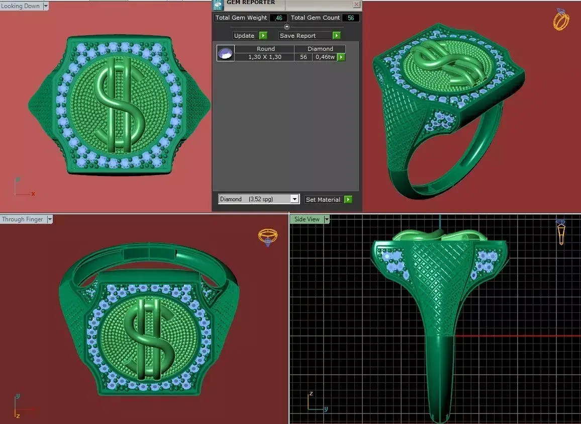 Luxury Dollar Sign Mens Ring With Diamonds Jewelry Gents Rings 3D print model