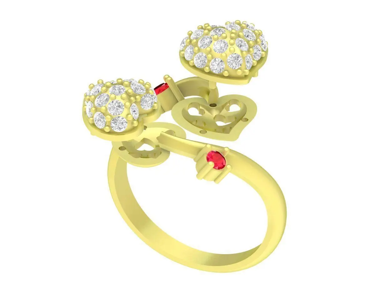 This is a professional 3D jewelry model of a luxury double cluster diamond ring, featuring two balanced cluster heads set on a refined band. The design highlights a modern and elegant composition, combining symmetry with a soft, feminine silhouette.