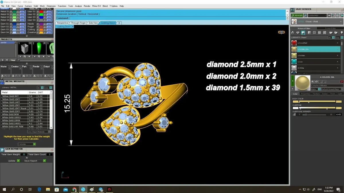 This ring model is carefully designed for jewelry manufacturing and casting. All essential technical information, including ring size, stone layout, stone quantity, dimensions, and metal weight, is clearly shown in the preview images to support accurate production and cost calculation.
