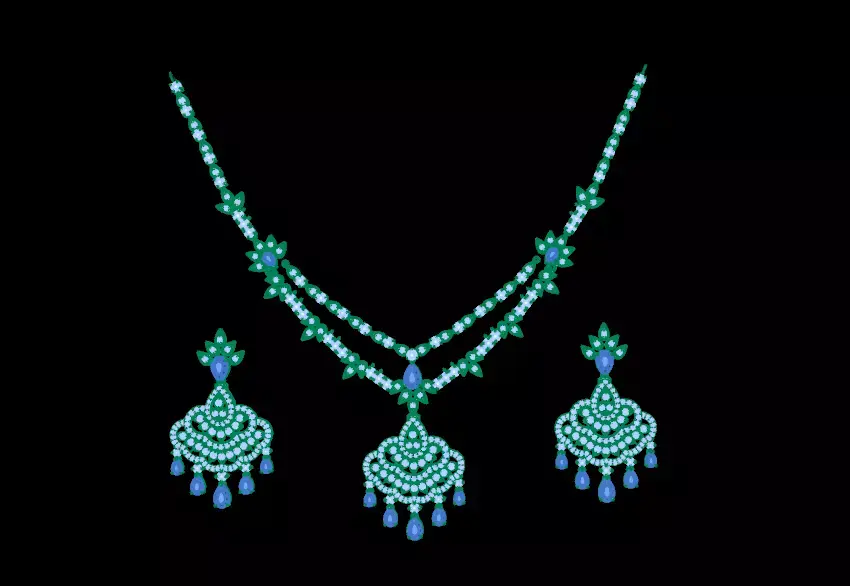 This jewelry set is crafted using ultra-light gauges for a refined and lightweight finish. Hand chiseling on the surface enhances shine and sparkle, giving the piece a premium and eye-catching appearance. Designed for efficient manufacturing with an elegant and luxurious look.