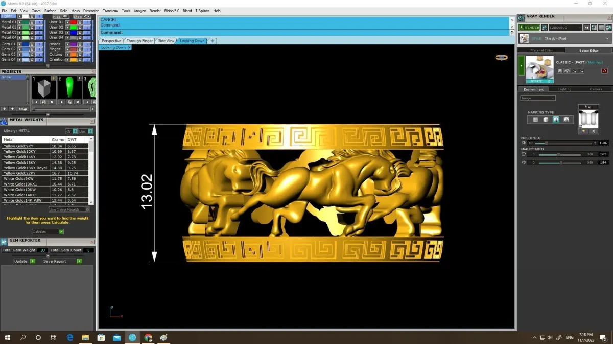 This professional 3D jewelry model is fully prepared for casting workflows. Detailed technical images are included to clearly present dimensions, estimated metal weight, and structural specifications, allowing jewelers and manufacturers to accurately evaluate production feasibility and material requirements.