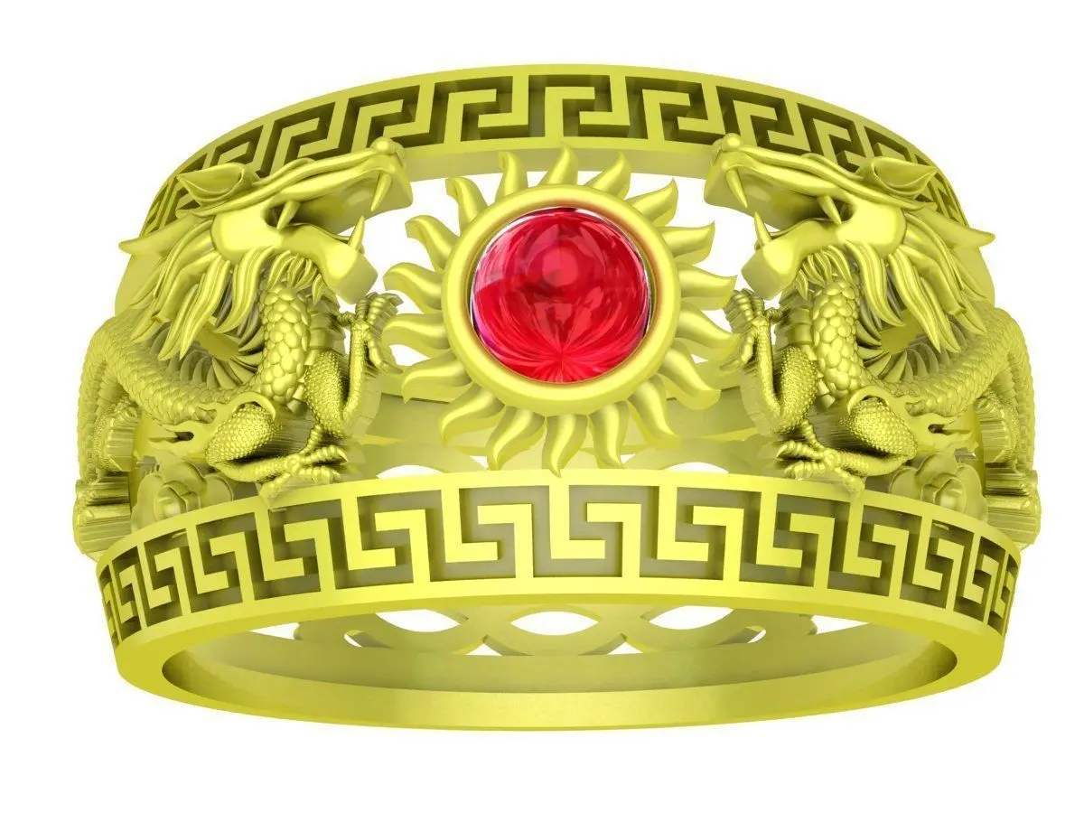 The ring is engineered with a wide band structure to support detailed carvings while maintaining comfort and durability. Dragon reliefs are clearly defined with smooth transitions, ensuring that fine details remain sharp after casting and polishing. The gemstone seat is precisely positioned for secure setting and optimal light performance. Openwork sections inside the band reduce weight and improve metal flow during casting.