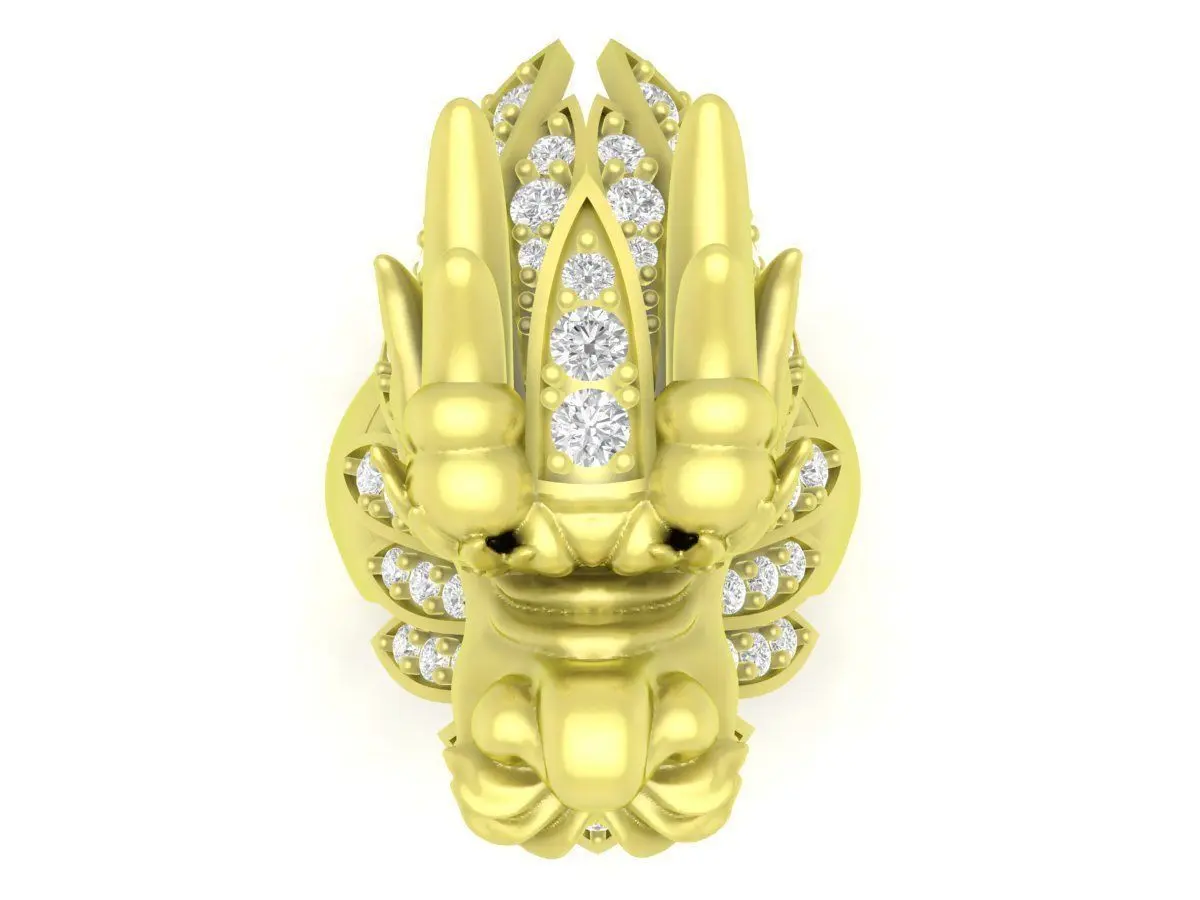 This 3D model features a luxurious dragon head men’s ring designed with exceptional detail, ideal for high-end jewelry production. The ring showcases a powerful dragon motif with sharp facial contours, layered scales, and dynamic horns that bring the mythical creature to life. Multiple gemstones are set around the dragon’s mane, adding brilliance and enhancing the overall depth of the design. The band is sculpted to maintain balance, comfort, and structural durability for casting in gold, silver, or platinum.