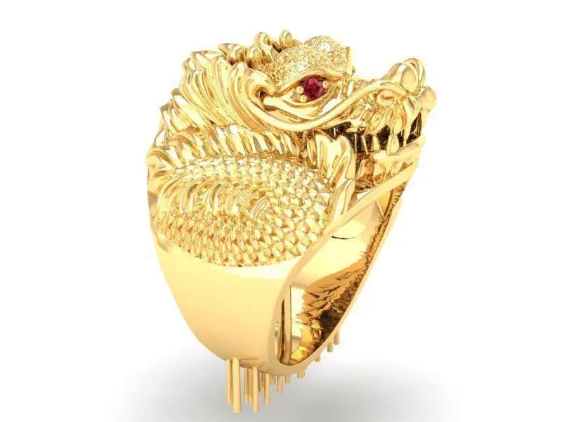 This 3D jewelry model showcases a powerful dragon head men’s ring inspired by Asian mythology.
