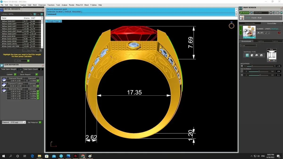 The CAD model is fully optimized for professional manufacturing, including proper seat depths, prong structures, and metal thicknesses that ensure long-term strength. Jewelers can cast the ring in gold, silver, or platinum and set it with natural or lab-grown gemstones such as ruby, emerald, or zircon. The model is ideal for CNC milling and lost-wax casting, with accurate dimensions shown in the included CAD previews.
