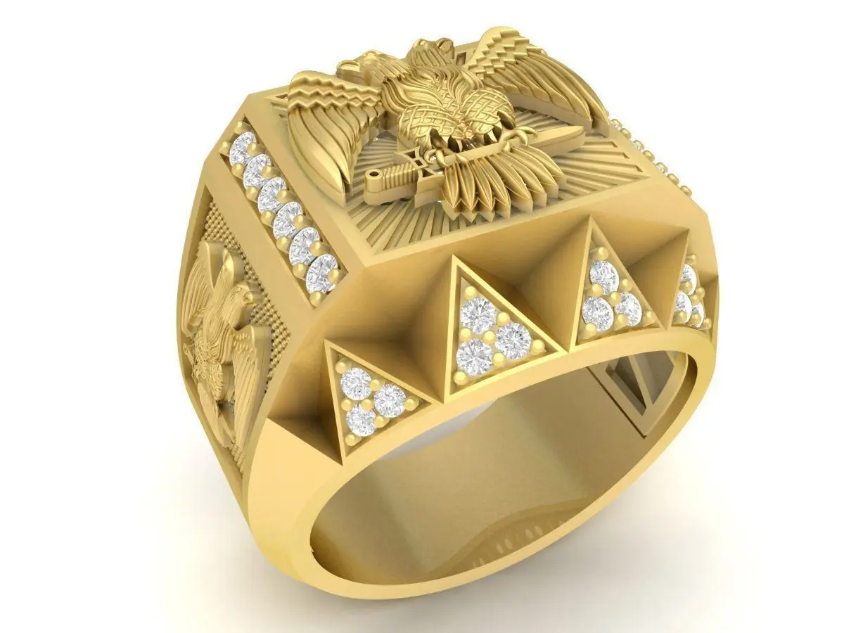 This luxury eagle ring jewelry 3D model features a bold and powerful design inspired by the eagle, a universal symbol of strength, leadership, freedom, and dominance. The centerpiece showcases a finely sculpted eagle with sharp details, balanced proportions, and strong geometric surfaces, creating a commanding and masculine appearance.