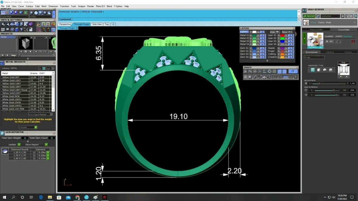 The 3D model is professionally prepared for real jewelry production, including lost-wax casting, CNC machining, and 3D printing. All critical dimensions, thicknesses, and stone placements are clearly displayed in the preview images to ensure accuracy during manufacturing.