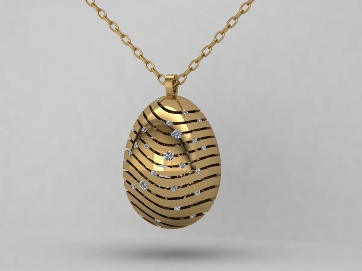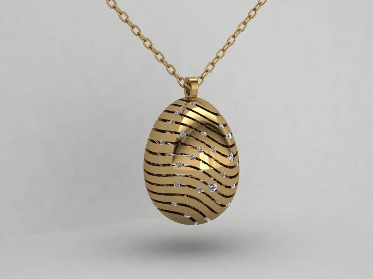 Product Introduction:This exquisite egg-shaped pendant is inspired by the legendary Fabergé designs – a symbol of timeless luxury and artistic excellence. Featuring elegant wave patterns and scattered sparkling stones, this piece perfectly blends modern creativity with classical charm.