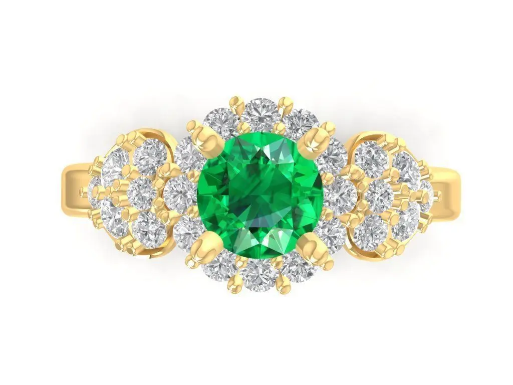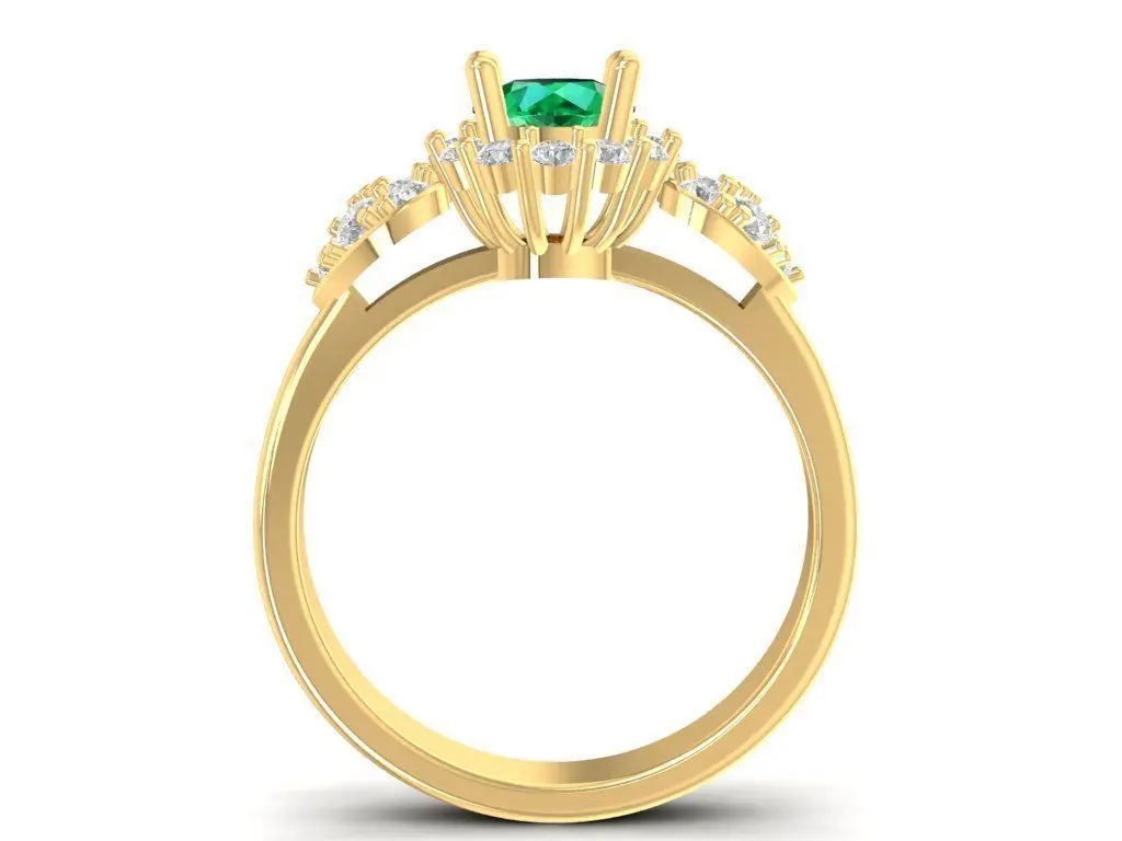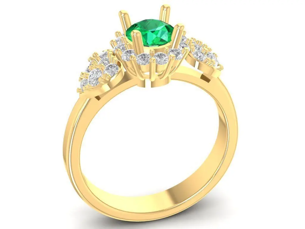 This 3D model features a luxurious emerald and diamond engagement ring for women, crafted with a classic yet radiant design.