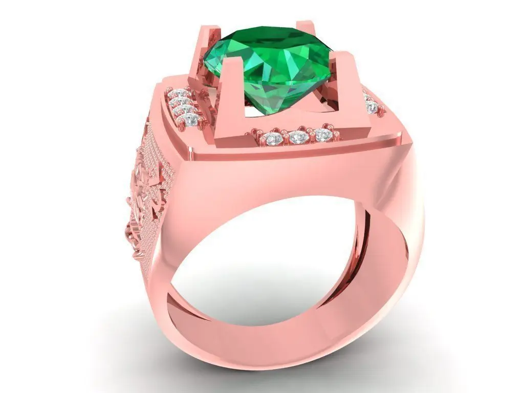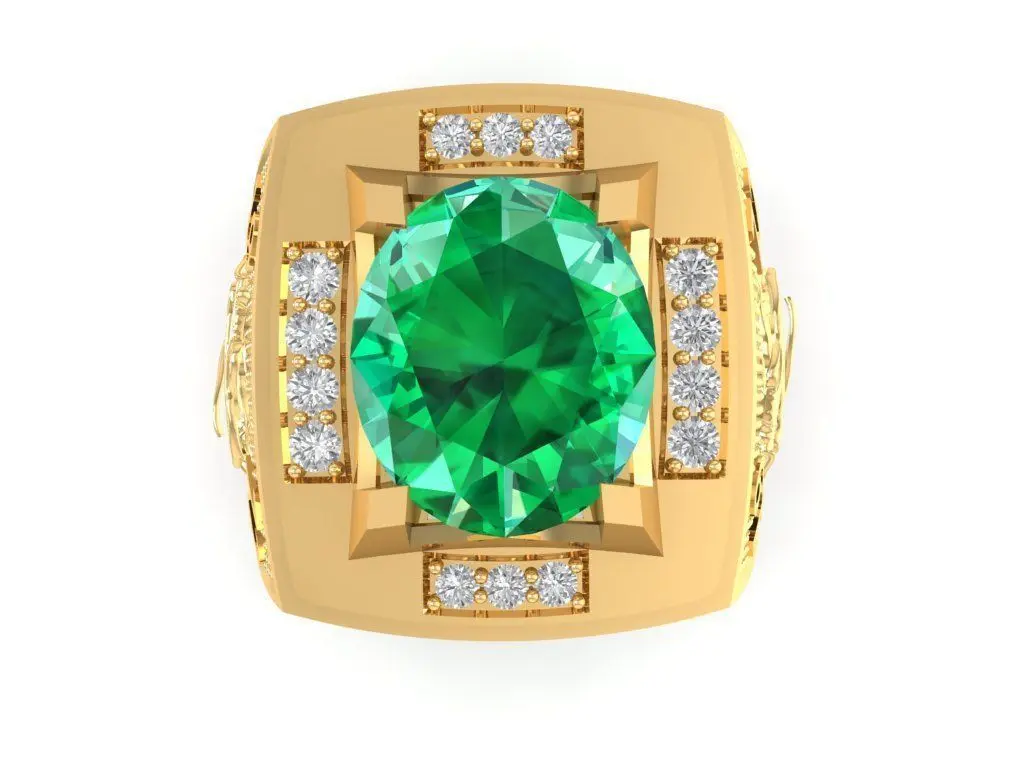 This 3D model features a luxury emerald and diamond signet ring for men, designed with a bold and sophisticated style.