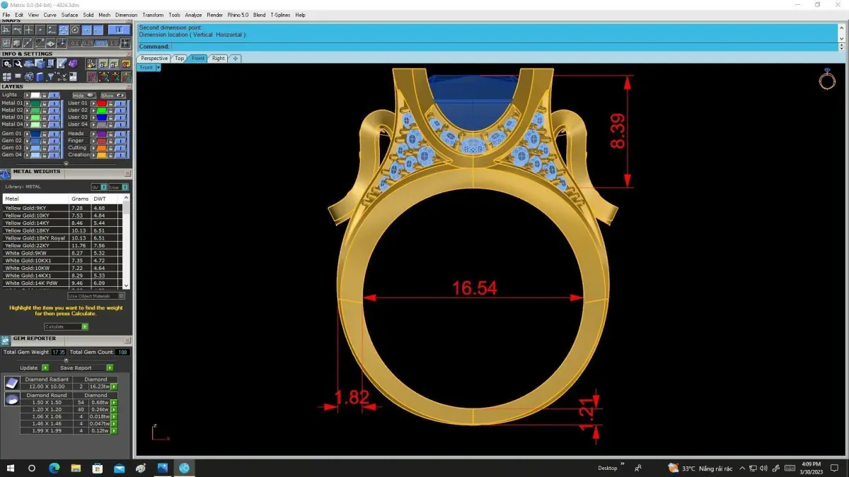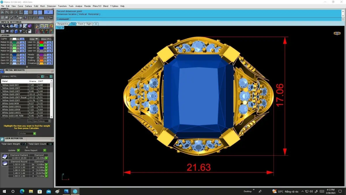 All dimensions, gemstone sizes, and weight information are clearly shown in the preview images. This model is prepared for casting and rendering purposes and is not intended for CNC machining.