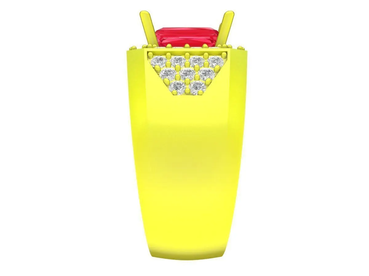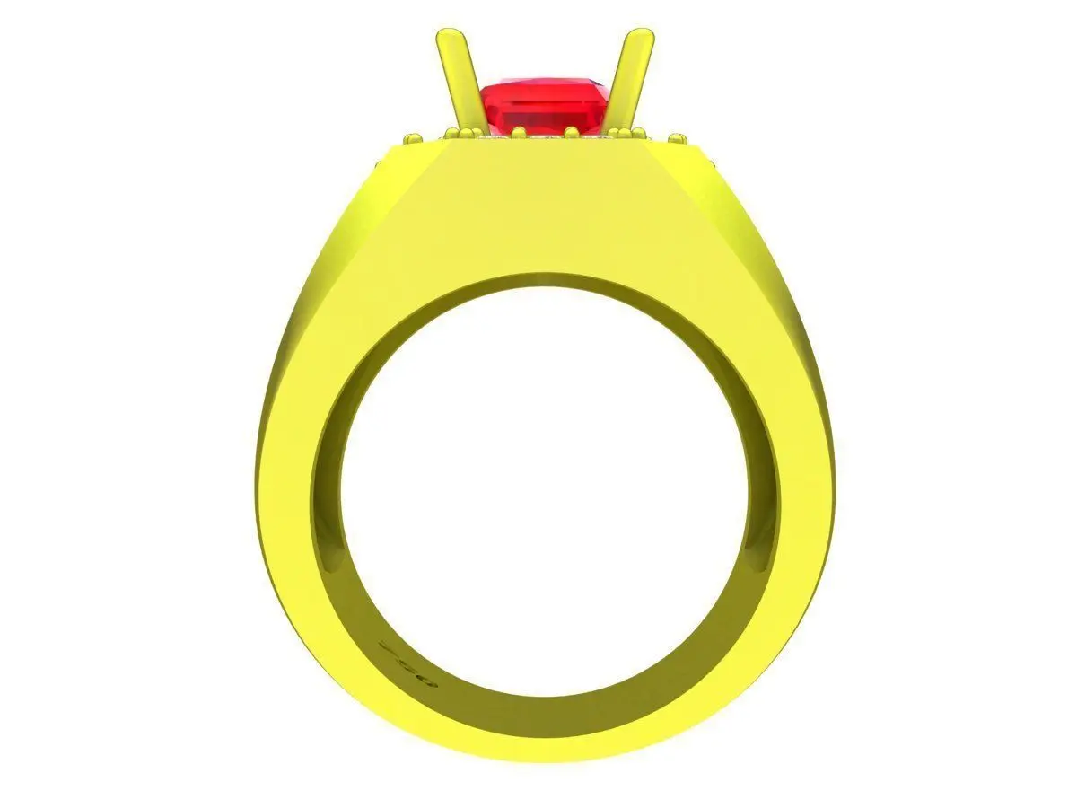 This luxury emerald cut halo ring is a bold and elegant 3D jewelry design created for modern men’s collections. The centerpiece features a rectangular emerald-cut stone held securely by prongs, surrounded by a clean halo of round accent stones that enhance brilliance and depth.