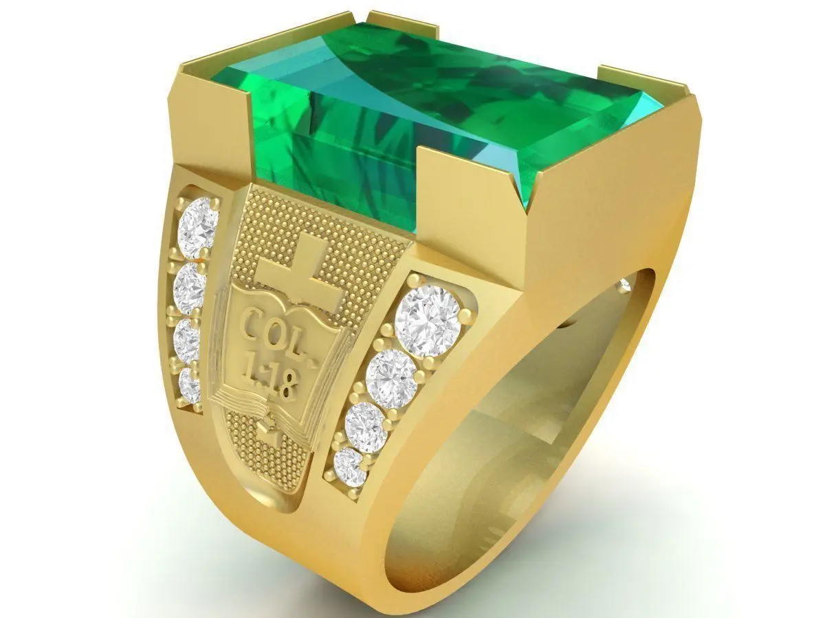 This Luxury Emerald Cut Rectangle Stone Men’s Ring is a high-quality CAD model designed for professional jewelry manufacturing. The ring features a bold rectangular emerald-cut center stone, giving it a powerful and masculine visual presence. The shoulders include detailed geometric motifs combined with multiple accent diamonds, enhancing both luxury and structural depth. All surfaces are cleanly modeled with proper curves and support thickness, making the design ideal for casting in gold, silver, or platinum.