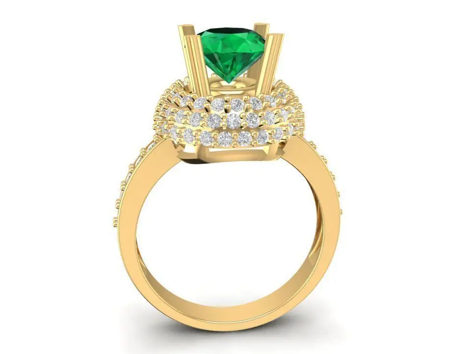 This 3D jewelry model presents a luxurious emerald and diamond halo ring designed for women who appreciate timeless glamour. The design features a large center gemstone—available in emerald, ruby, or sapphire—surrounded by multiple rows of brilliant-cut diamonds that create an impressive sparkle from every angle. The elevated setting enhances the brilliance of the center stone while maintaining perfect balance and elegance. Ideal for engagement rings, cocktail jewelry, or fine luxury collections. The 3D model is fully production-ready, suitable for gold, silver, or platinum casting, and compatible with both natural gemstones and cubic zirconia. All preview images display realistic proportions, accurate stone sizes, and detailed craftsmanship. The model is optimized for professional jewelers, CAD designers, and 3D printers who need a high-quality, editable, and watertight design.