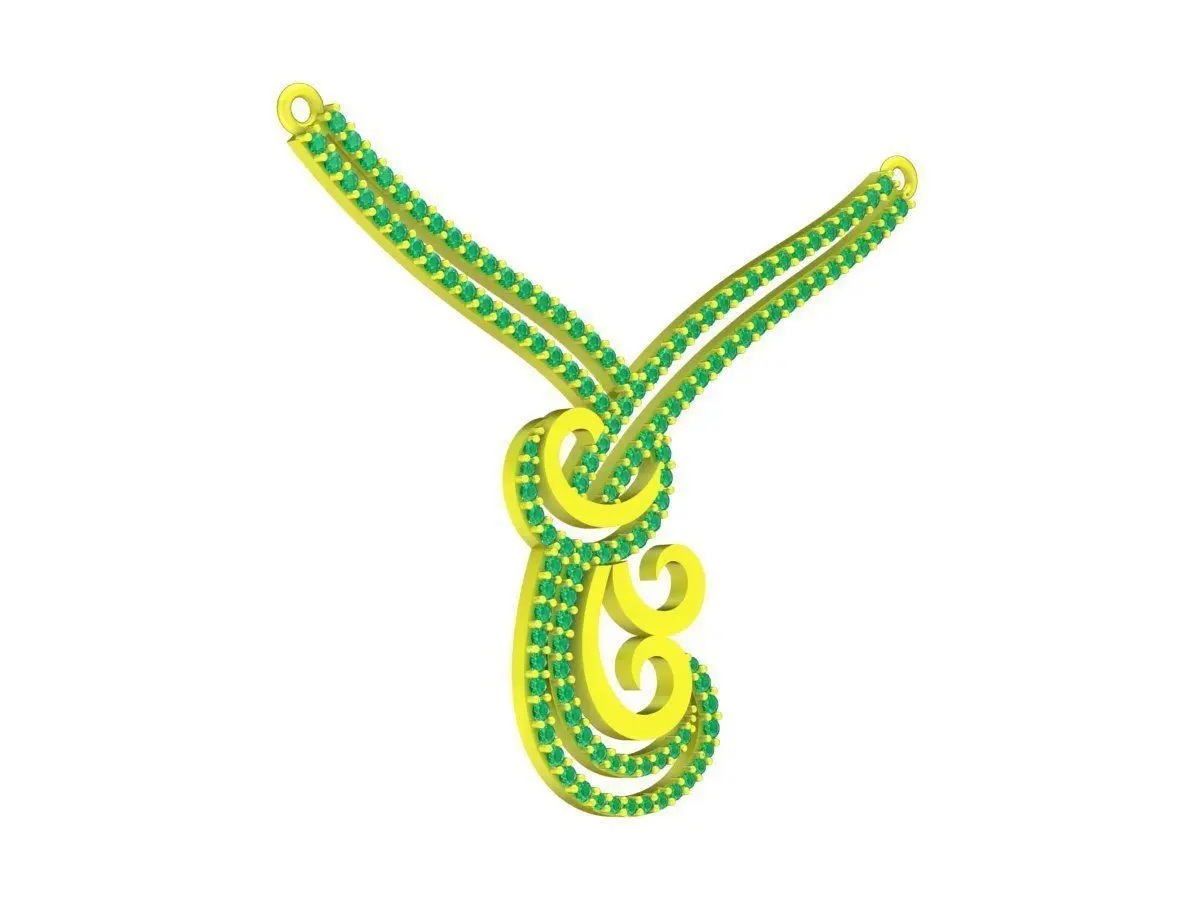 This luxury pendant jewelry design features an elegant swirl-inspired motif accented with emerald stones and refined diamond detailing. The flowing curves create a graceful sense of movement, while the balanced proportions give the pendant a modern and sophisticated appearance.