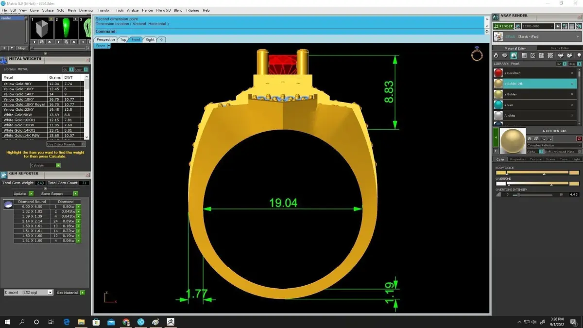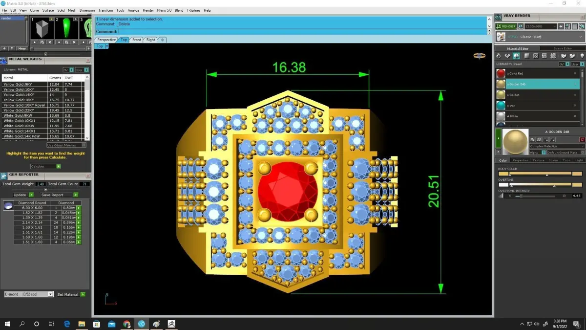 All dimensions, stone sizes, and estimated metal weight are clearly displayed in the preview images, providing accurate technical information for production planning. The model is built with clean topology and precise stone seats, making it fully ready for CNC machining, resin 3D printing, and lost wax casting.