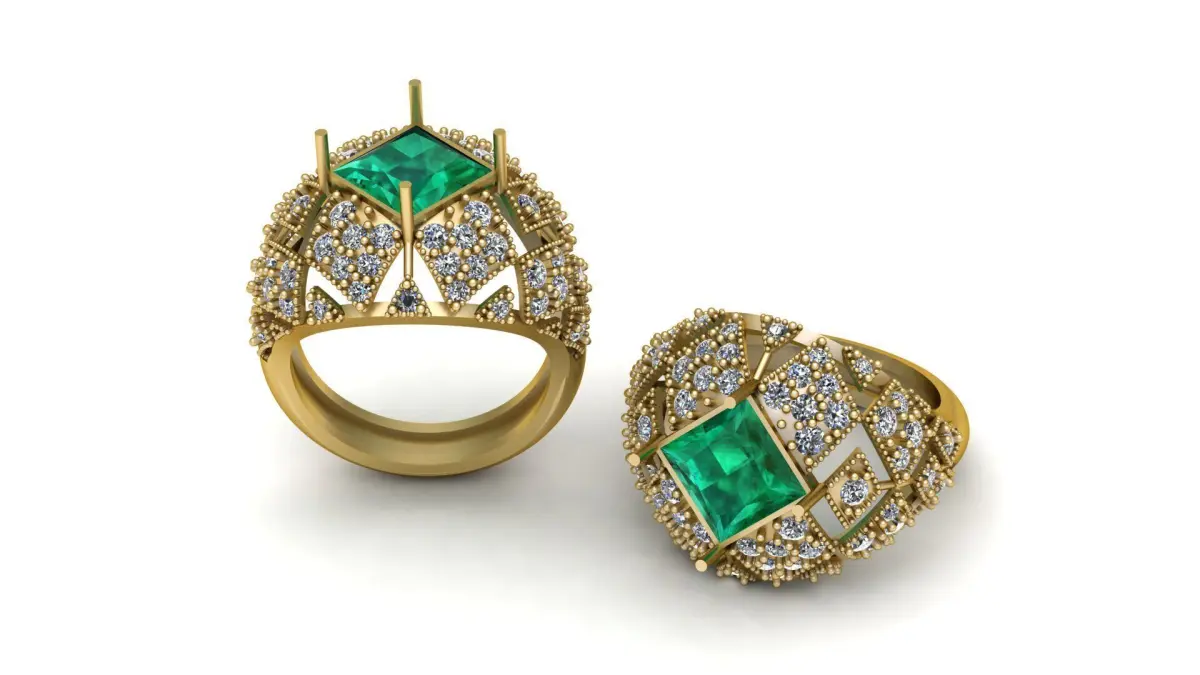 LUXURY EMERALD RING 3D PRINTABLE MODEL 3D print model