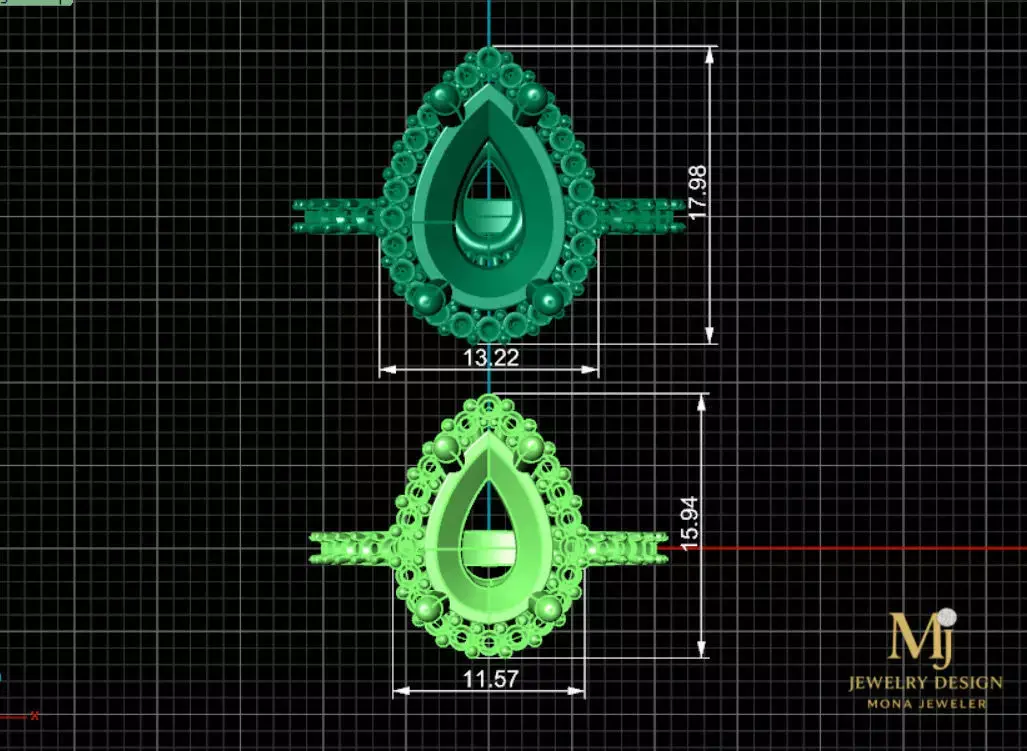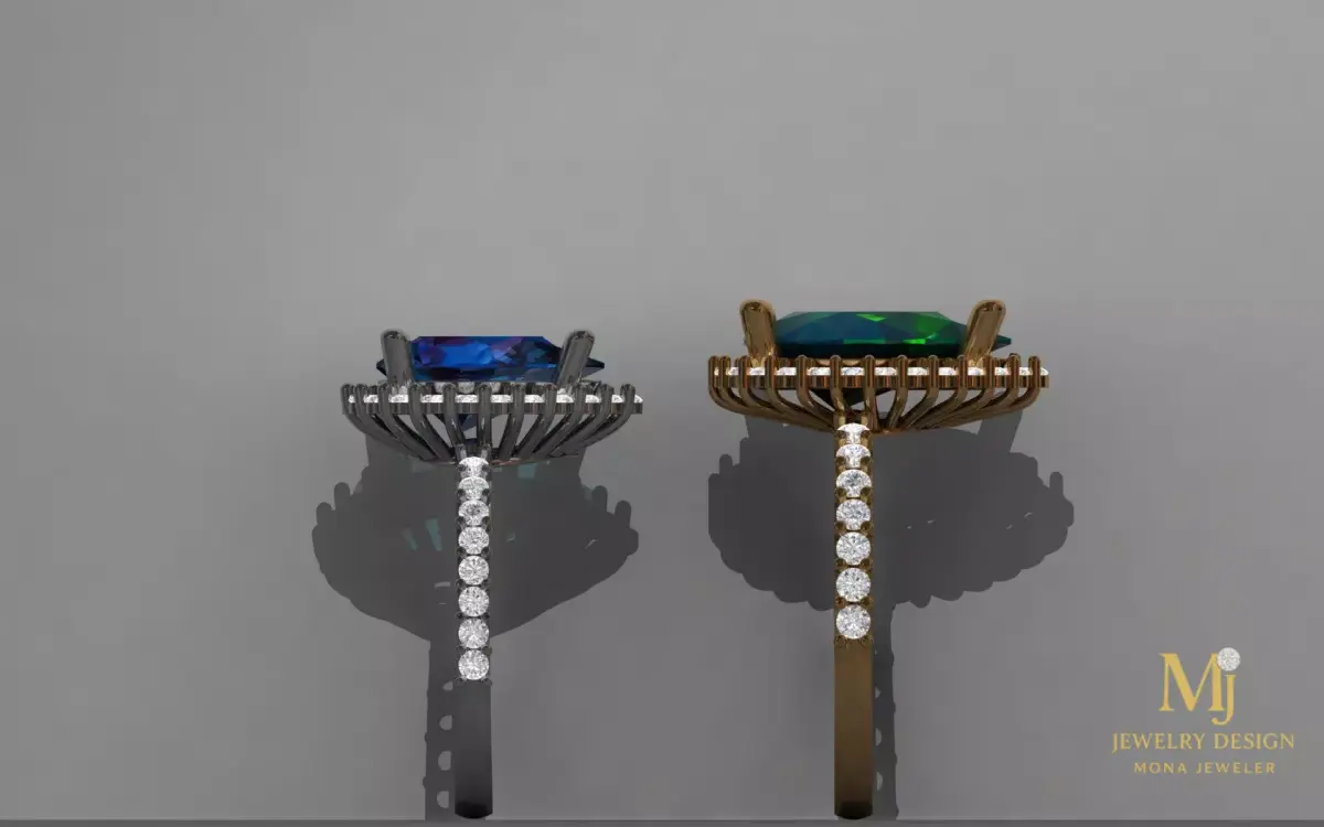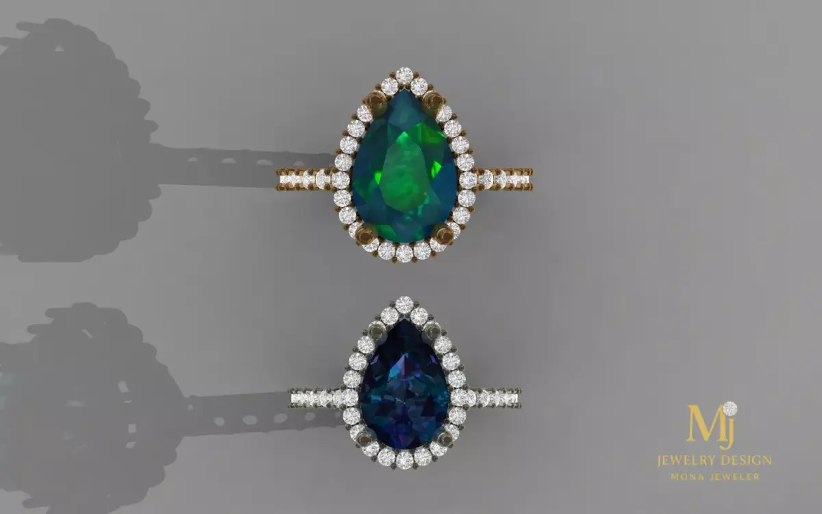 This high-quality 3D model presents an elegant gemstone ring design featuring pear-cut emerald and sapphire center stones surrounded by brilliant diamonds. The model is created with precision and is suitable for jewelry designers, manufacturers, and 3D artists.Available Sizes & Metal Weights:Size 55Silver weight: 3.69 g18K Gold weight: 4.95 gSize 60Silver weight: 4.60 g18K Gold weight: 6.00 g