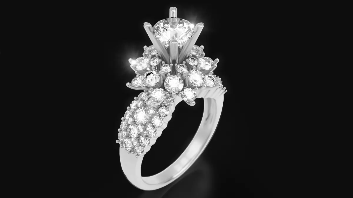 Halo Engagement Ring has been modelled in Gemvision matrix. Geometry is fixed and ready for 3d printing.
