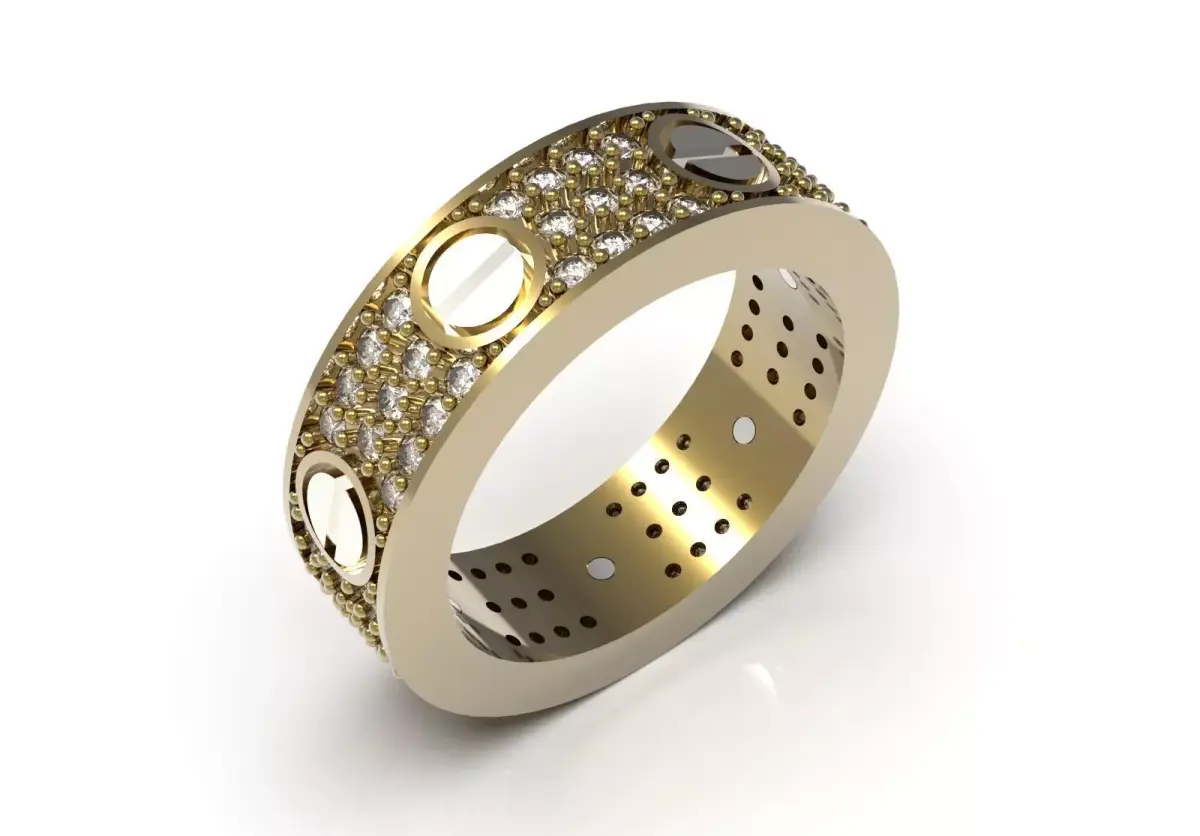 - Type of cut: The gems are arranged in the Micro-Pave method between the walls and the main elements. Gem holding balls are included in the file so that after casting, the cut can be done with high precision.