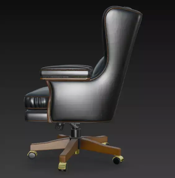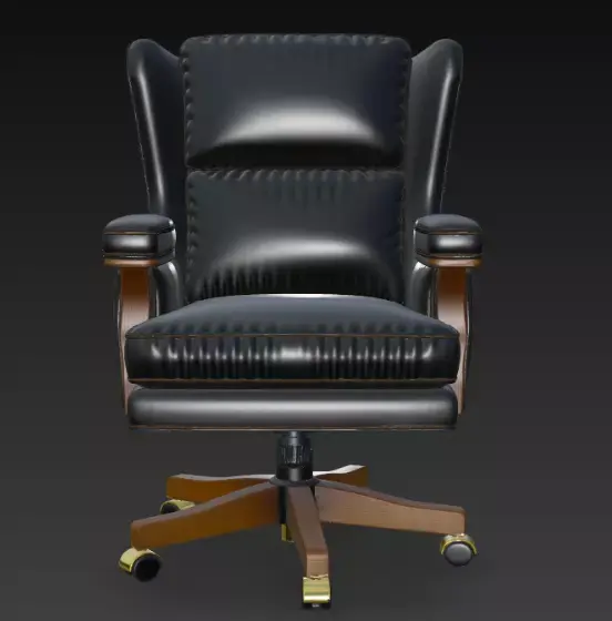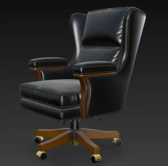 High-detail 3D model of a premium luxury executive office chair featuring deep-tufted black genuine leather upholstery, polished wooden armrests and five-star base, contrasted stitching, and elegant gold-accented casters. Perfect for high-end corporate offices, CEO interiors, luxury home offices, film sets, architectural visualization, and upscale game environments.Real-world scale (centimeters), clean quad topology ready for subdivision, non-overlapping UVs, 4K PBR textures (BaseColor, Roughness, Metallic, Normal, Height, AO). All parts logically named and grouped. Instantly usable in Blender, Maya, 3ds Max, Cinema 4D, Unreal Engine, Unity — no plugins required.