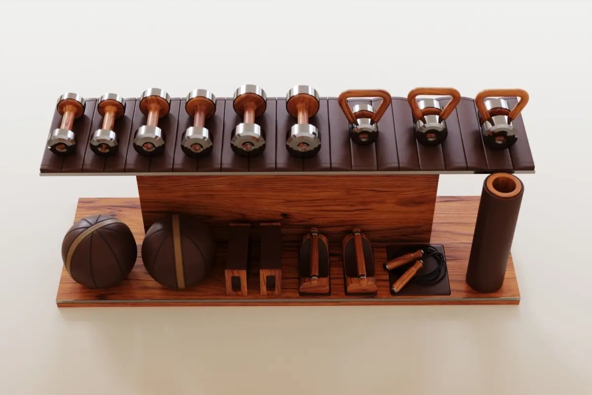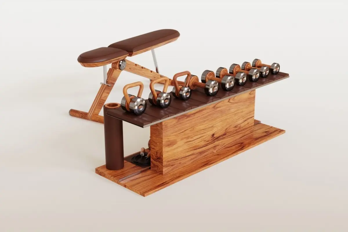 3d Model of an exercise bench, exercise balls, and dumbbells. Made for Arch-Viz and other CGI work.Ready for use in: