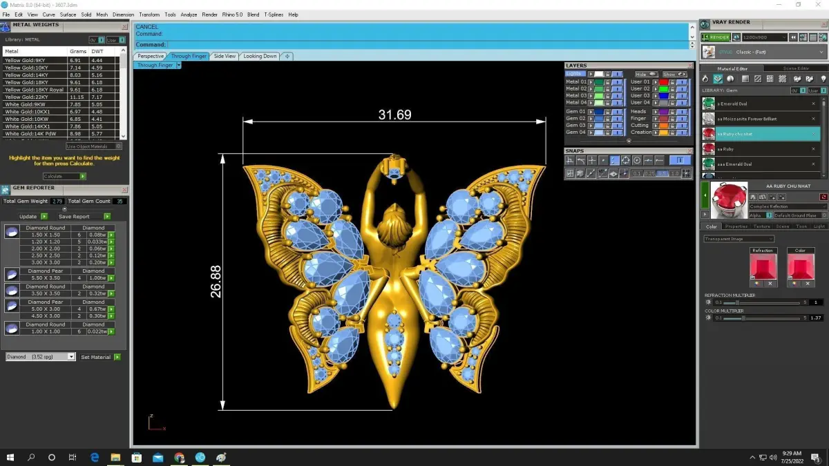 This model is ideal for luxury women’s pendants, fantasy-inspired jewelry collections, high-end statement pieces, and custom-made designs. It is well suited for jewelry designers, manufacturers, and brands seeking a refined, elegant, and production-ready fairy butterfly pendant.