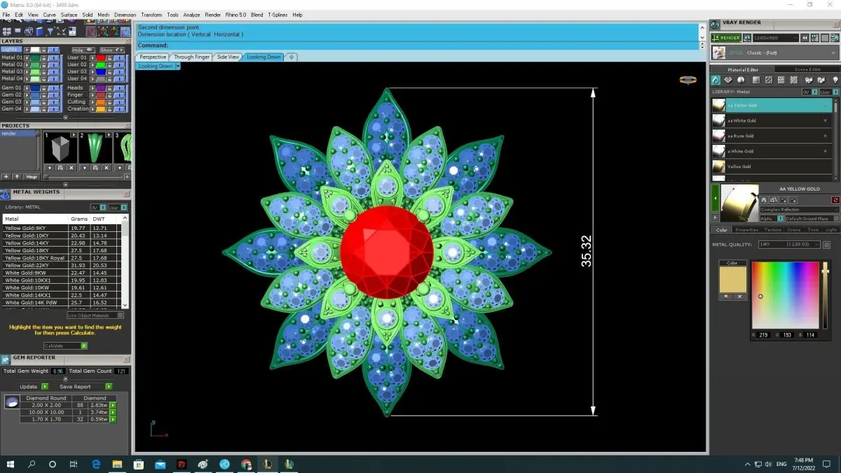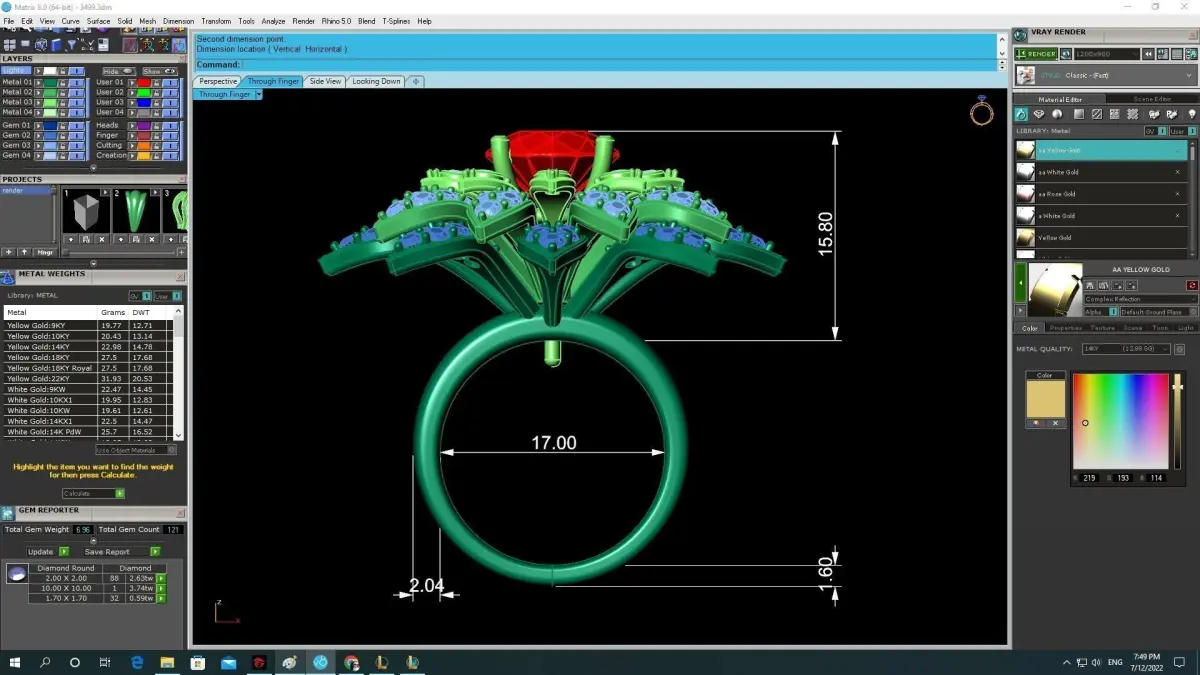 All dimensions, stone sizes, setting details, and weight information are clearly shown in the preview images. The model is fully optimized for lost-wax casting, CNC machining, and high-resolution 3D printing, suitable for gold, silver, or platinum jewelry production.