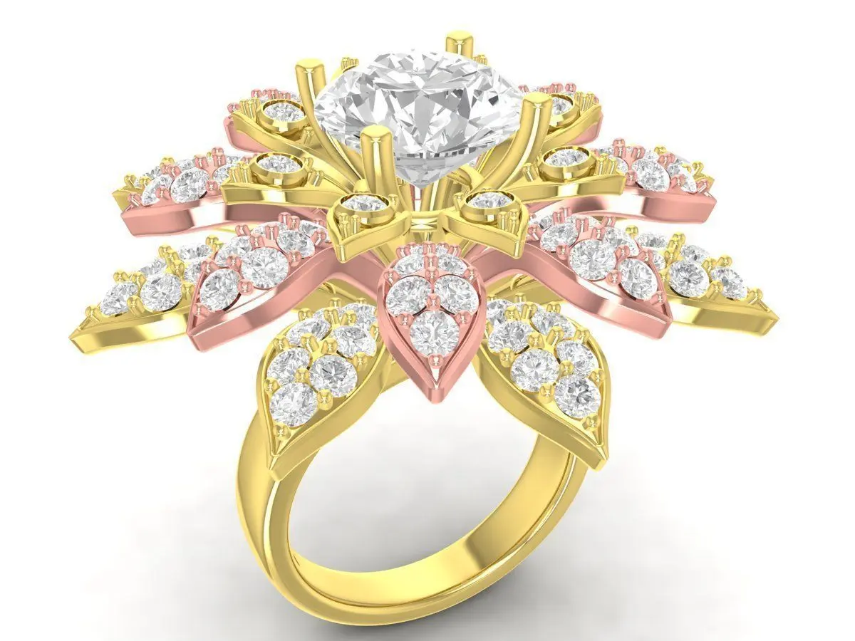 The ring structure is carefully engineered with precise stone settings, balanced proportions, and solid shank thickness, ensuring excellent durability and comfort for daily or special-occasion wear. The layered petal arrangement enhances light reflection and provides a premium, high-end appearance suitable for fine jewelry collections.