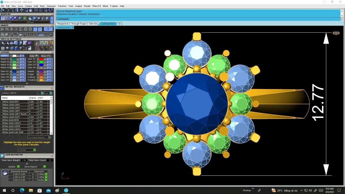 This professional 3D jewelry model is fully prepared for casting and manufacturing. All preview images include clear measurements, stone sizes, stone quantities, and technical specifications. The design can be easily adapted to different gemstone colors or precious metals, making it ideal for custom jewelry production, commercial use, and high-end design projects.