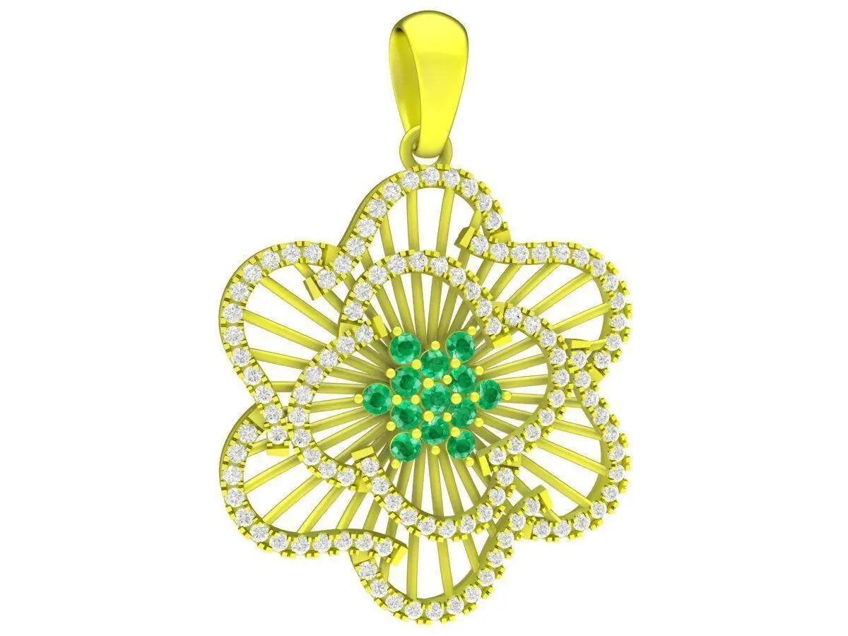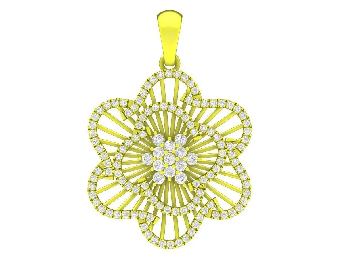 This luxury floral diamond gemstone pendant 3D model features an elegant flower-inspired design with refined openwork detailing. The pendant is crafted with symmetrical petal patterns, creating a light and airy structure while maintaining a strong and luxurious appearance.