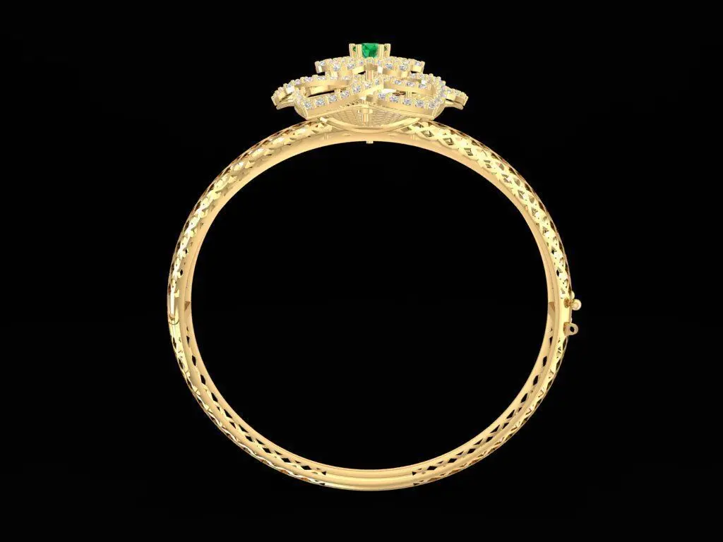 This 3D model presents a luxury floral jewelry set inspired by the beauty of blooming lotus petals. The collection includes a matching ring, bangle, and earrings, each crafted with intricate openwork patterns and detailed gem settings.