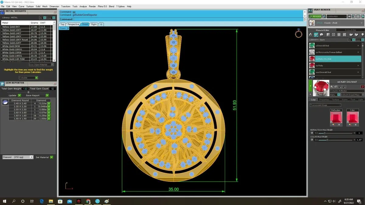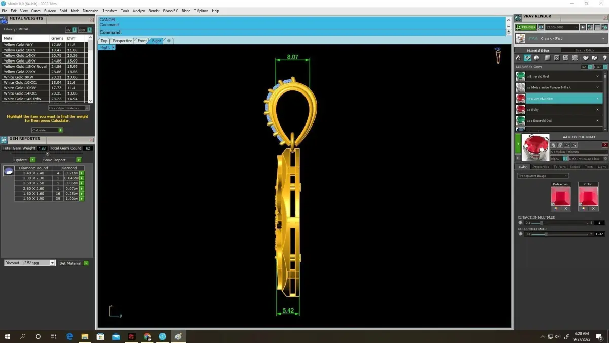 All dimensions, stone sizes, stone placements, and metal weights are accurately modeled and clearly shown in the preview images. The design supports various gemstone color variations and is suitable for production in yellow gold, white gold, rose gold, or other precious metals.