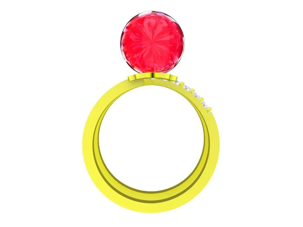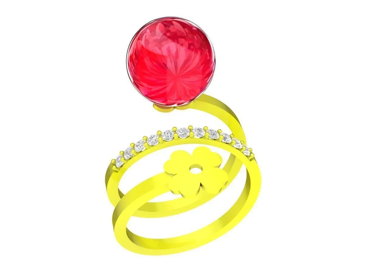 This 3D jewelry model features a luxury floral open band ring designed with a playful yet elegant aesthetic. The centerpiece is a round gemstone set in a raised position, creating a clear focal point and enhancing light reflection from multiple angles.