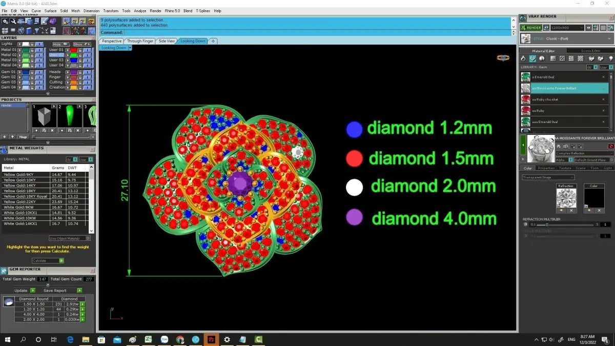 All technical specifications, including ring size, metal weight, stone dimensions, and diamond quantities, are accurately modeled and shown in the preview images. The geometry is clean, watertight, and optimized for professional jewelry production, stone setting, and polishing.