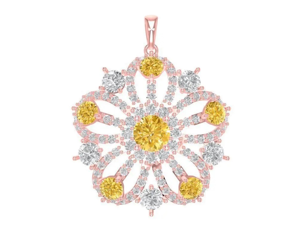 This 3D jewelry model showcases a luxurious flower diamond pendant designed for women who appreciate elegance and fine craftsmanship. The pendant features a multi-layer floral pattern with brilliant round and baguette-cut stones radiating from a vibrant center gemstone. Its balanced symmetry and refined details make it sparkle beautifully from every angle. Ideal for fine jewelry collections, bridal accessories, or custom luxury designs. The 3D model is fully ready for production, suitable for gold, silver, or platinum casting, and supports both natural gemstones and cubic zirconia. All preview renders display realistic proportions, accurate dimensions, and detailed stone settings. The model is optimized for professional jewelers, CAD designers, and 3D printers who seek a high-quality, editable, and watertight design.