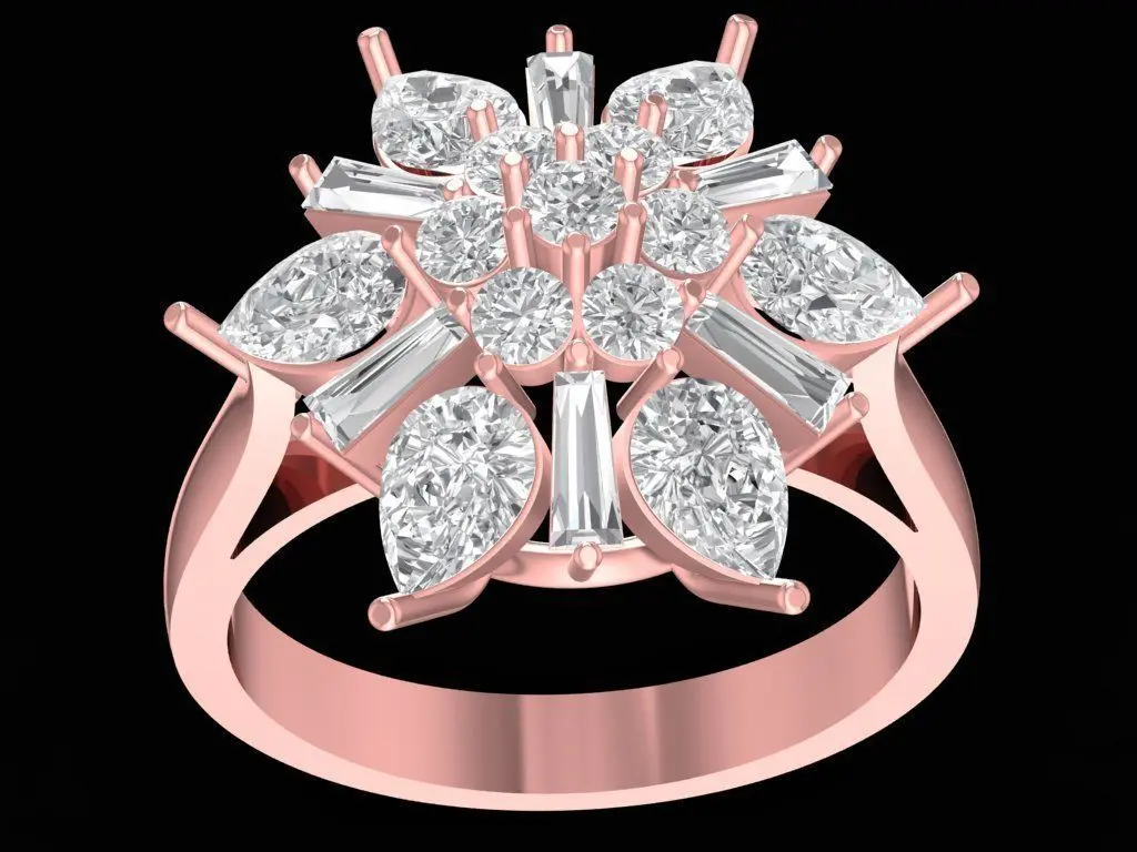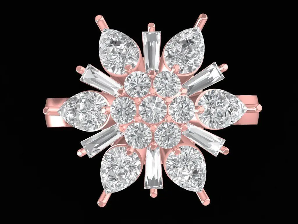 This luxury flower diamond ring for women features an exquisite floral design crafted from multiple marquise and round-cut gemstones. The radiant petal arrangement creates a blooming effect that captures light beautifully from every angle. The ring is elegant yet glamorous, making it perfect for evening wear or fine jewelry collections.