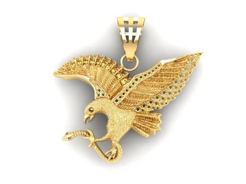 This Luxury Flying Eagle Pendant 3D model represents strength, freedom, and victory through its majestic design. The pendant showcases a soaring eagle with open wings, detailed feathers, and a strong beak, creating a bold and powerful visual statement.