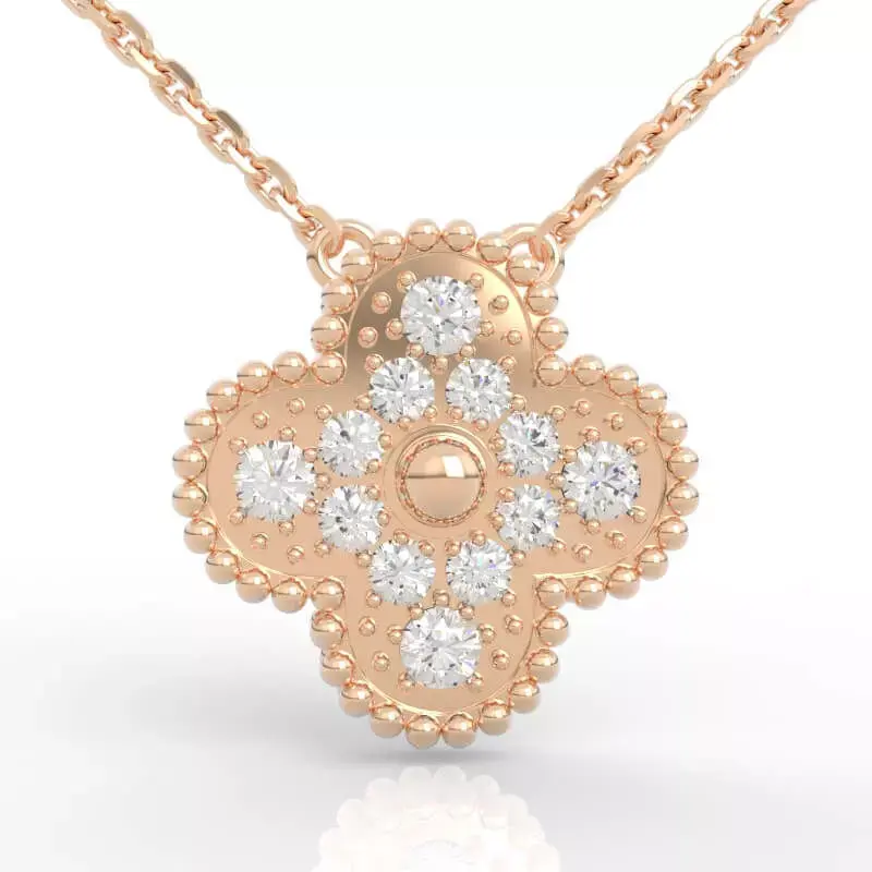 Four Leaf Clover Milgrain Diamond Pendant 3D Model – Where Luck Meets Luxury