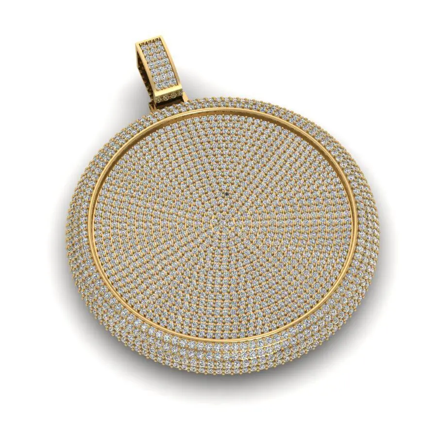 Presenting a stunning circular pendant, meticulously designed and 3D-modeled for precision. This piece features full diamond detailing, expertly set to enhance its beauty and brilliance. The design combines timeless elegance with modern craftsmanship, making it a perfect choice for both everyday elegance and special occasions. Crafted with attention to detail, it offers a luxurious touch, with diamonds that sparkle from every angle. Additionally, this pendant has a customizable center, allowing you to add your own engraving or text, making it a truly personal piece. A must-have for those who appreciate sophistication and luxury in their jewelry collection.Let me know if you'd like any further adjustments!