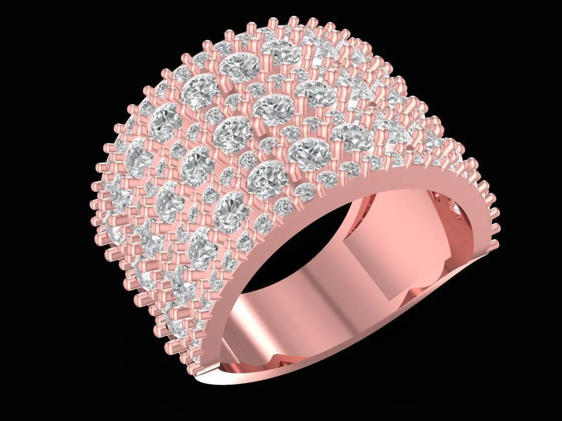This design is ideal for jewelry brands, designers, and manufacturers looking for a high-end pavé ring suitable for gold, silver, or platinum. The dome structure combined with full pavé coverage makes it a standout accessory for luxury collections, bridal jewelry, or statement fashion pieces. The model is production-ready and suitable for both small-batch and mass manufacturing.