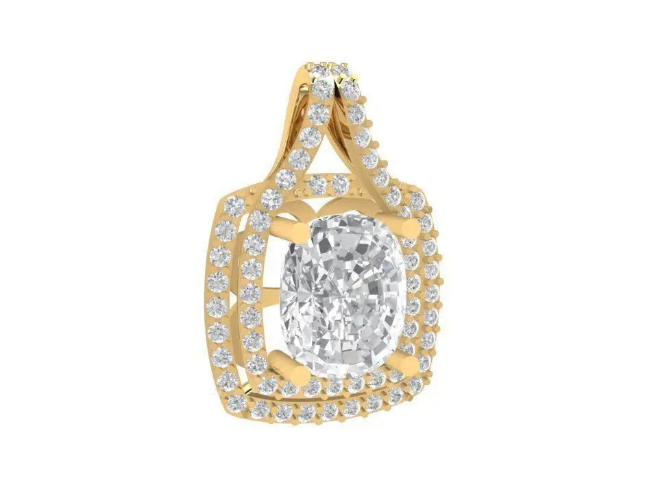 This 3D model represents a luxury gemstone halo gold pendant for women, designed with precision and elegance.
