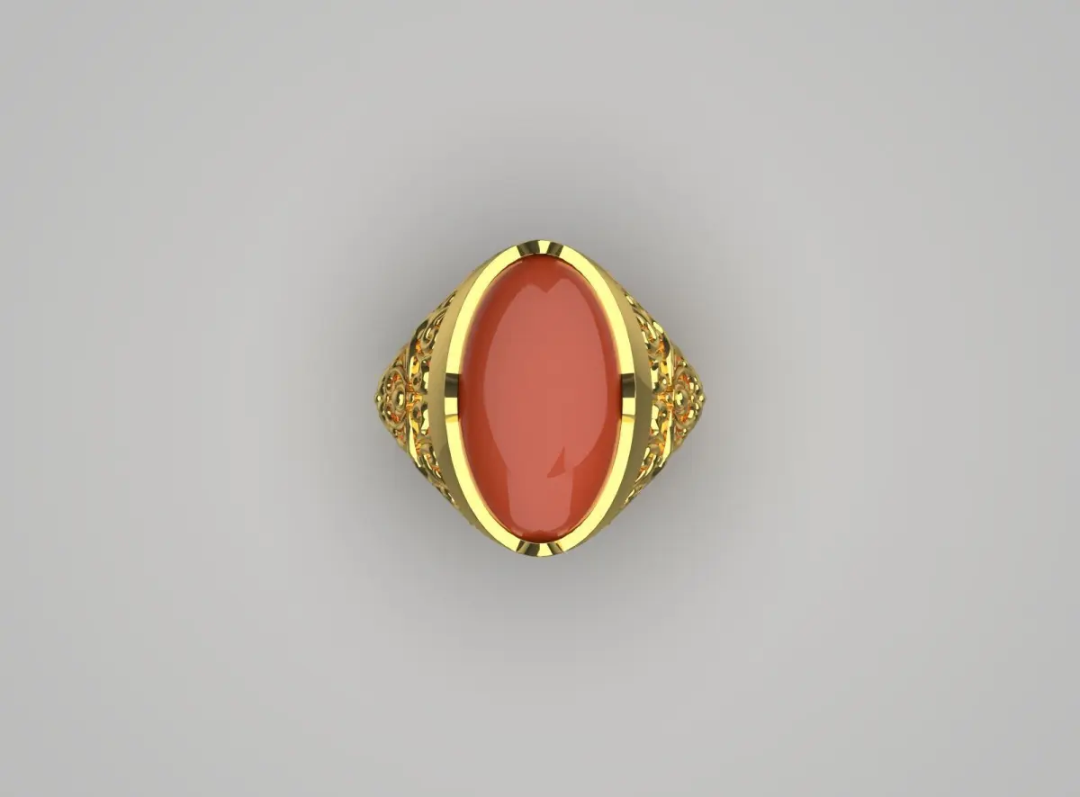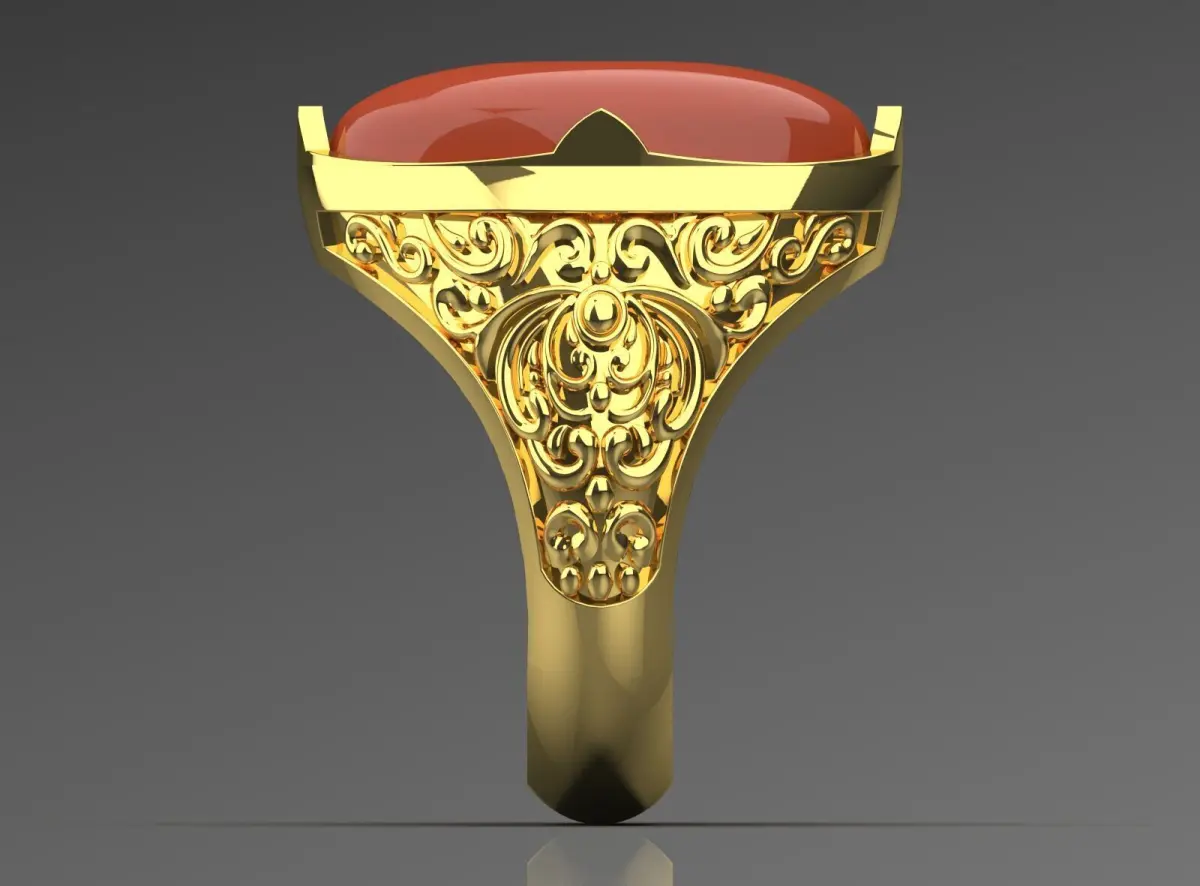 This yellow gold men's ring has a creative and unique design that symbolizes a strong personality and unique style. Its centerpiece with a vibrant and attractive stone gives the work a special shine and eye-catching appeal. A ring with artistic and delicate patterns shows taste and attention to detail. Made of high-quality gold, it ensures durability and long-lasting shine. This ring symbolizes self-confidence and classic style and can be a unique gift for special and lovely men. With this piece, every eye will be turned to you and it will elevate your style to a higher level.