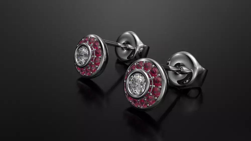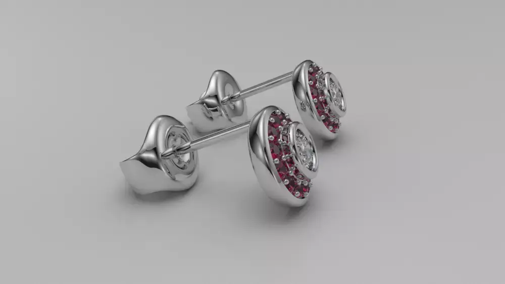 Luxury gemstone stud earrings Round diamond cluster earrings Free 3D model