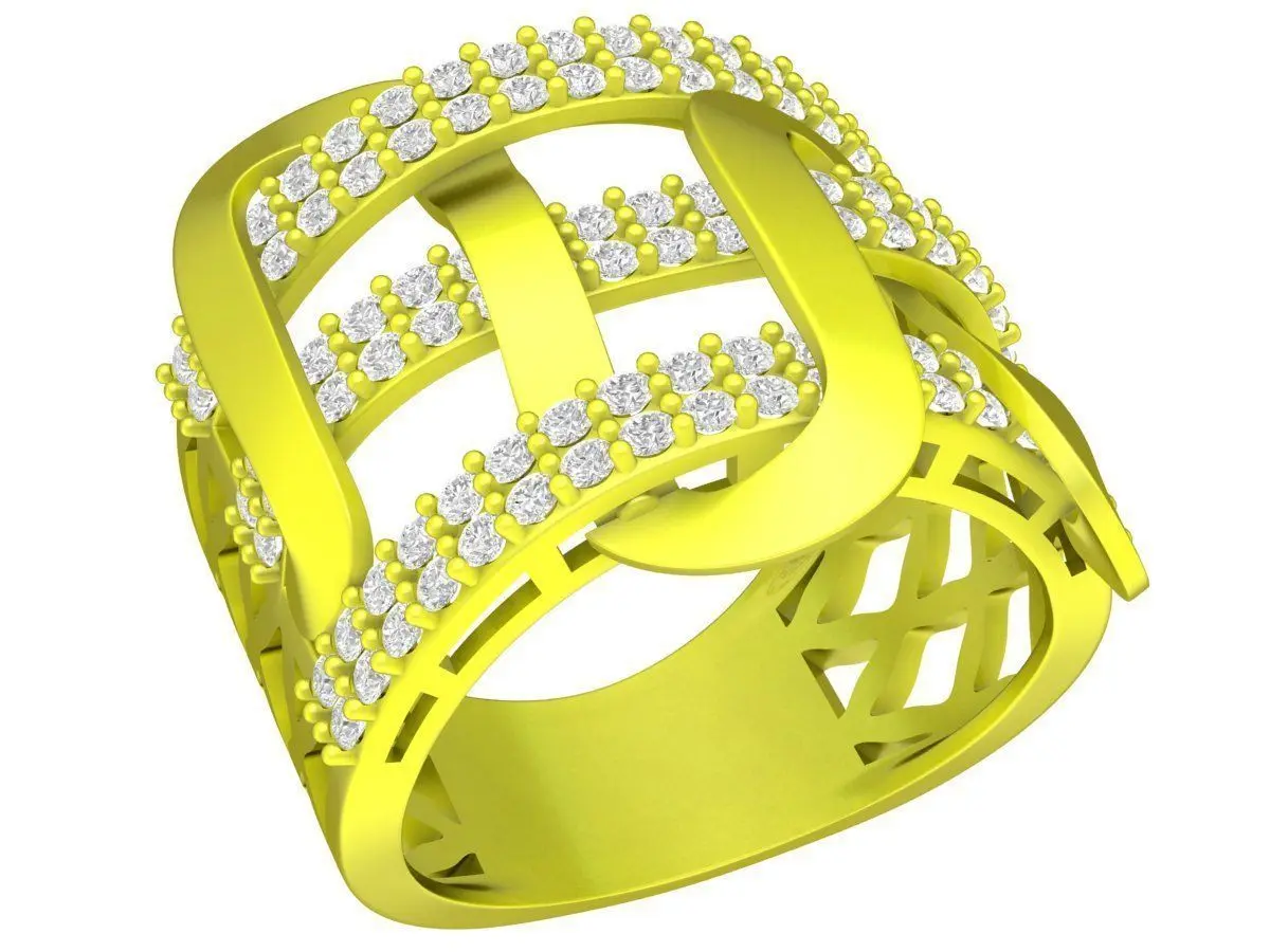 This luxury geometric pavé statement ring is a high quality 3D jewelry model designed for premium fine jewelry production and realistic visualization. The design features an intricate interwoven structure with multiple pavé set surfaces, creating a bold architectural appearance and strong visual depth.