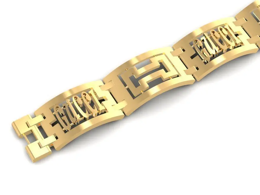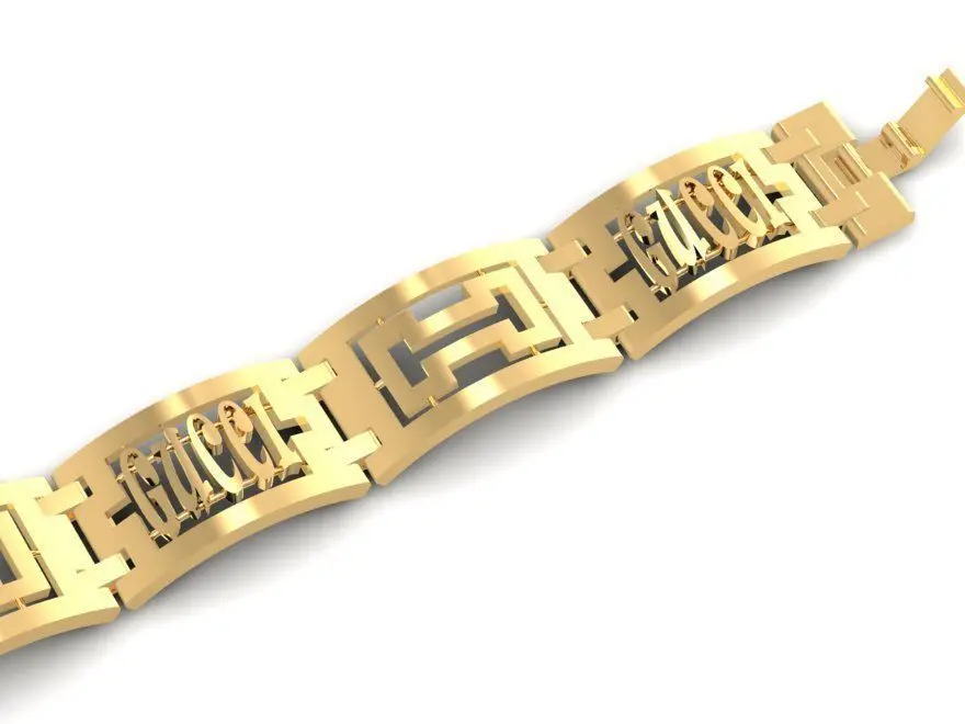 This 3D model features a luxury gold men’s bracelet with bold geometric link design. The structured rectangular links are crafted to create a masculine and stylish appearance, offering both strength and elegance. Its polished finish highlights the modern yet timeless aesthetic, making it suitable for high-end jewelry collections.