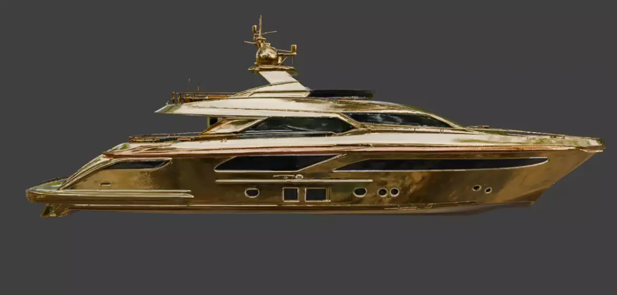 Tagsluxury yacht, gold boat, 3D model, metallic exterior, premium vessel, maritime asset, sleek design, PBR materials, gold yacht, high-end lifestyle